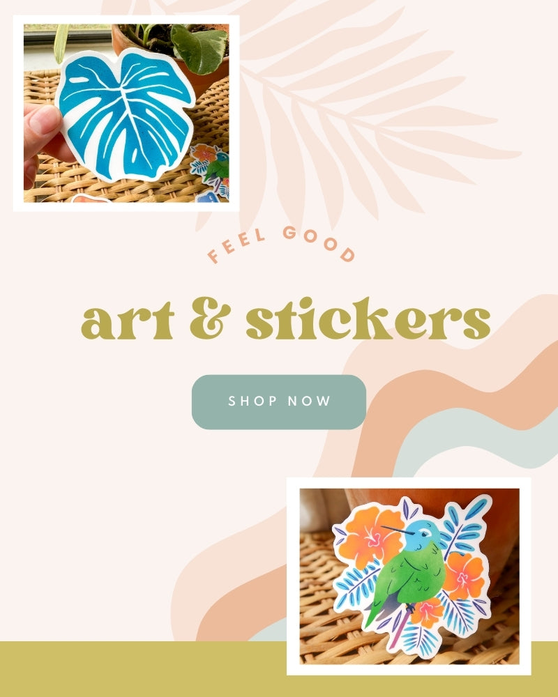 Hi, I'm Erin â the artist, mom, and sunshine-chaser behind this little shop! Based in Florida, my work is inspired by the vibrant colors and tropical beauty that surround me every day â think palm trees, coastal critters, and lots of playful, feel-good vibes. As a mom, creating art has become a meaningful way to carve out space for myself and connect with others. What started as a creative outlet has grown into a small business filled with digitally-drawn stickers, art prints, and apparel, all designed with love (and often packed during naptime). Thanks for being here and supporting my colorful corner of the world!