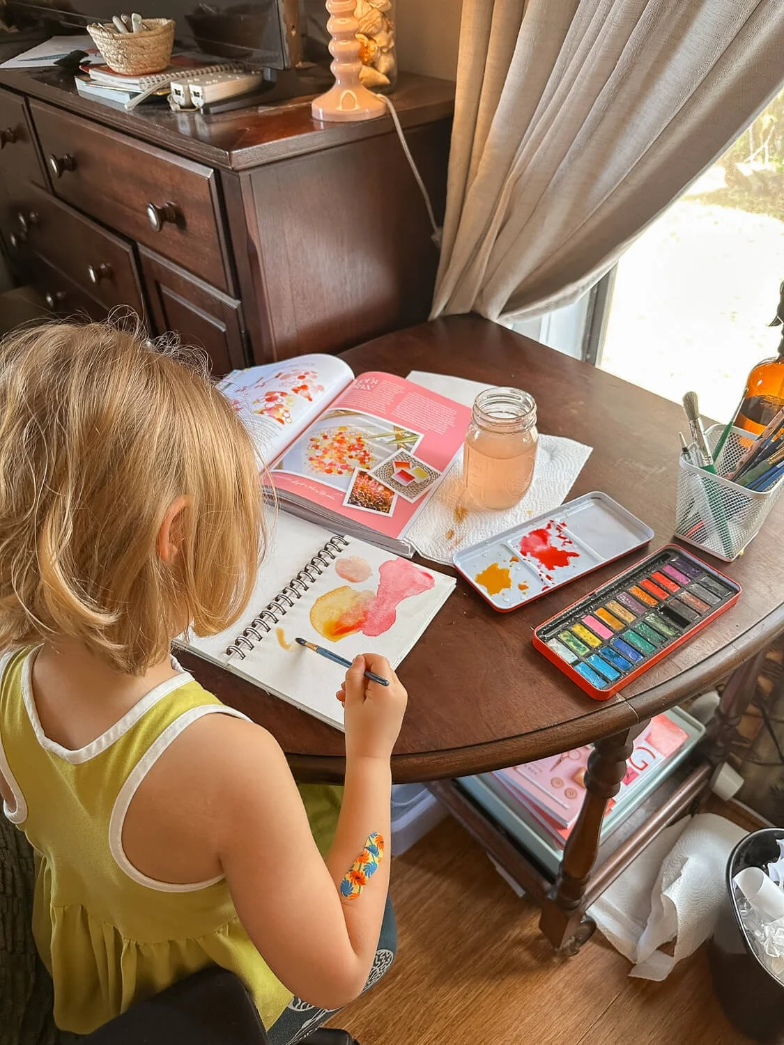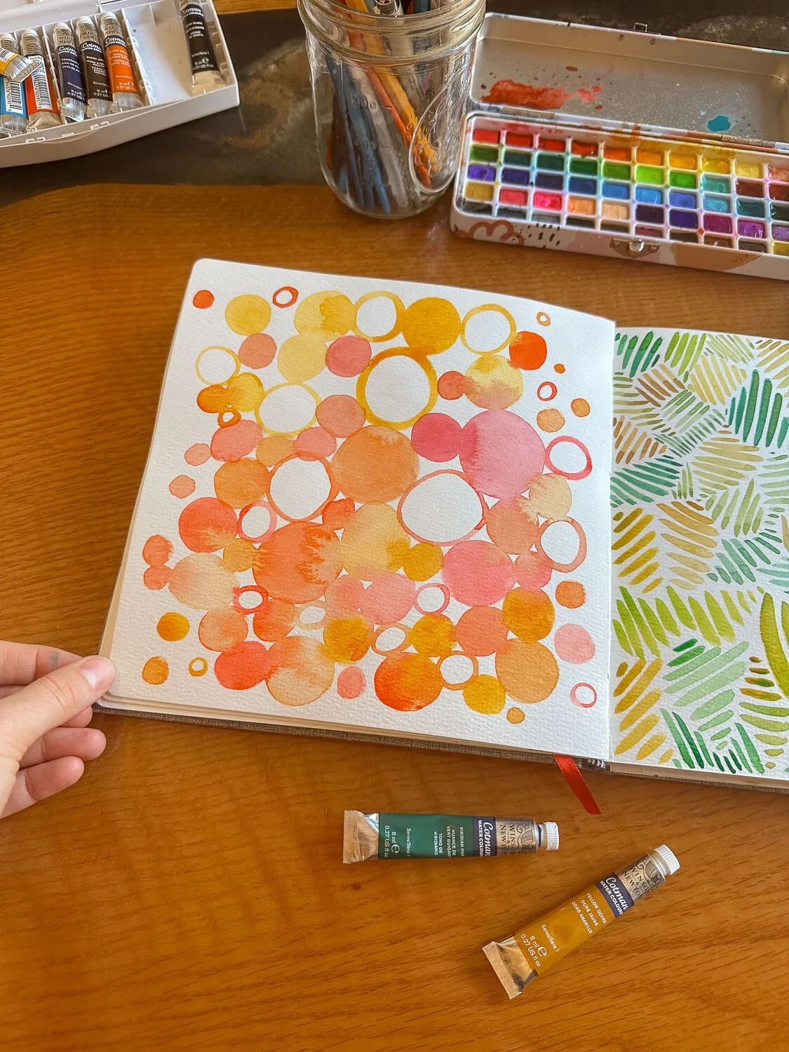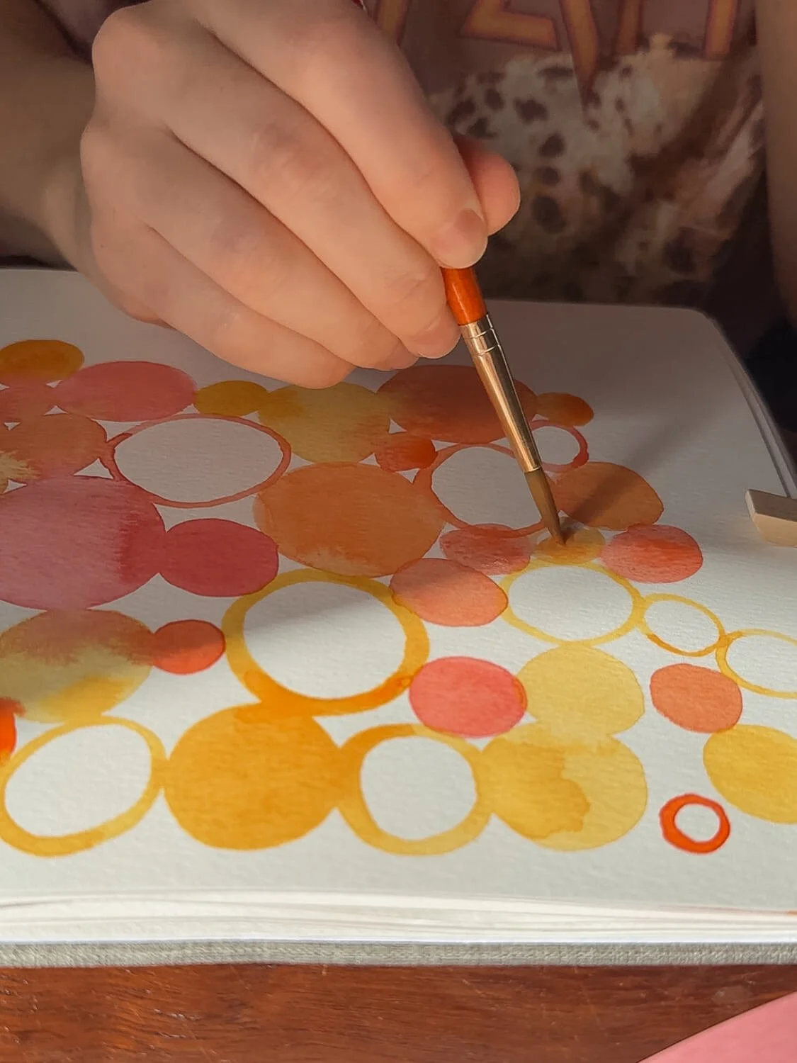 At one point while I was doing this exercise, my daughter walked into the room and asked what I was painting, and she immediately wanted to join. So we grabbed her sketchbook and her little set of paints and she started painting circles too. And it was actually the perfect activity for a kid to jump into because there’s no pressure to make something recognizable. You're not trying to copy a specific image — you’re just exploring shapes and colors.