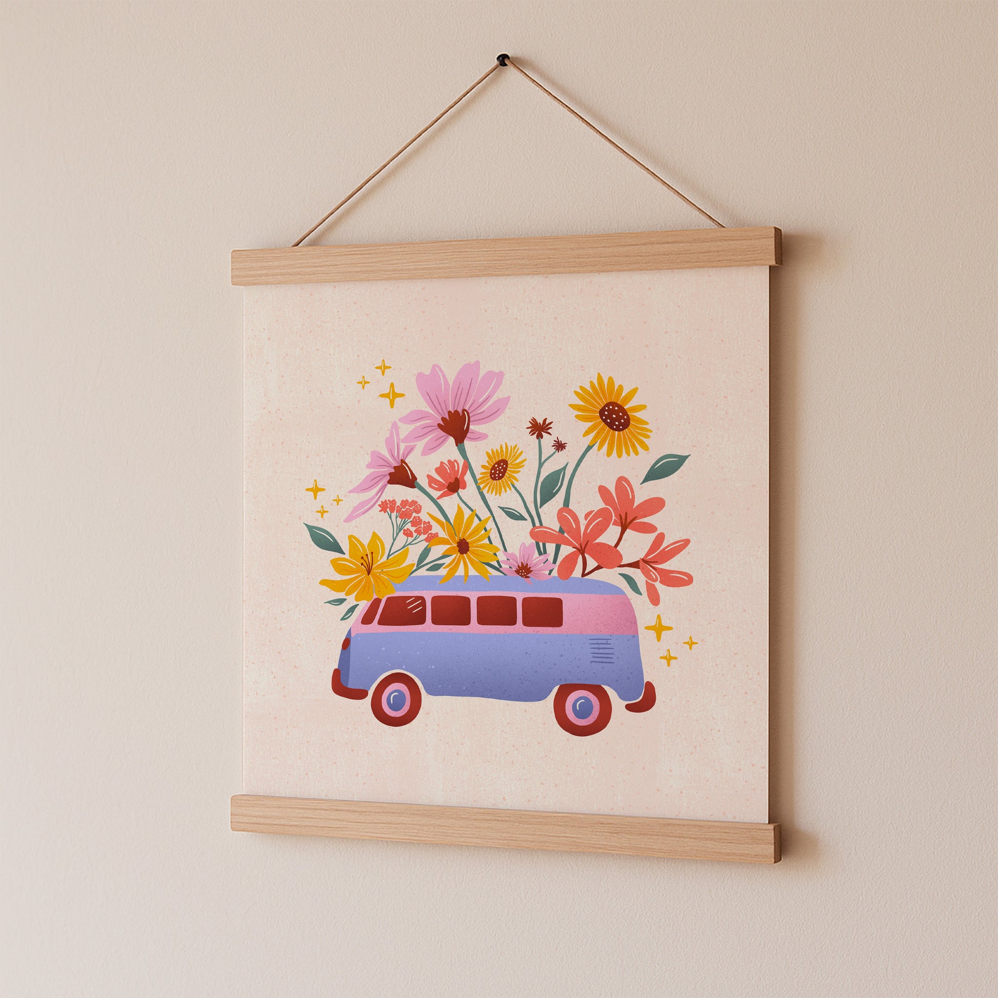 Flower Power Van Art Print 8x8"