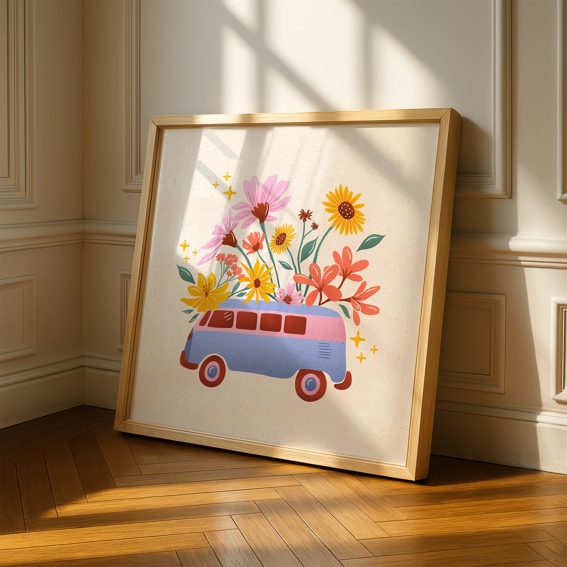 Big vibes, big blooms—this retro-inspired van design makes a bold floral statement in larger formats. Overflowing with color and carefree charm, it’s professionally printed on archival-quality matte paper and shipped directly from our print partner.