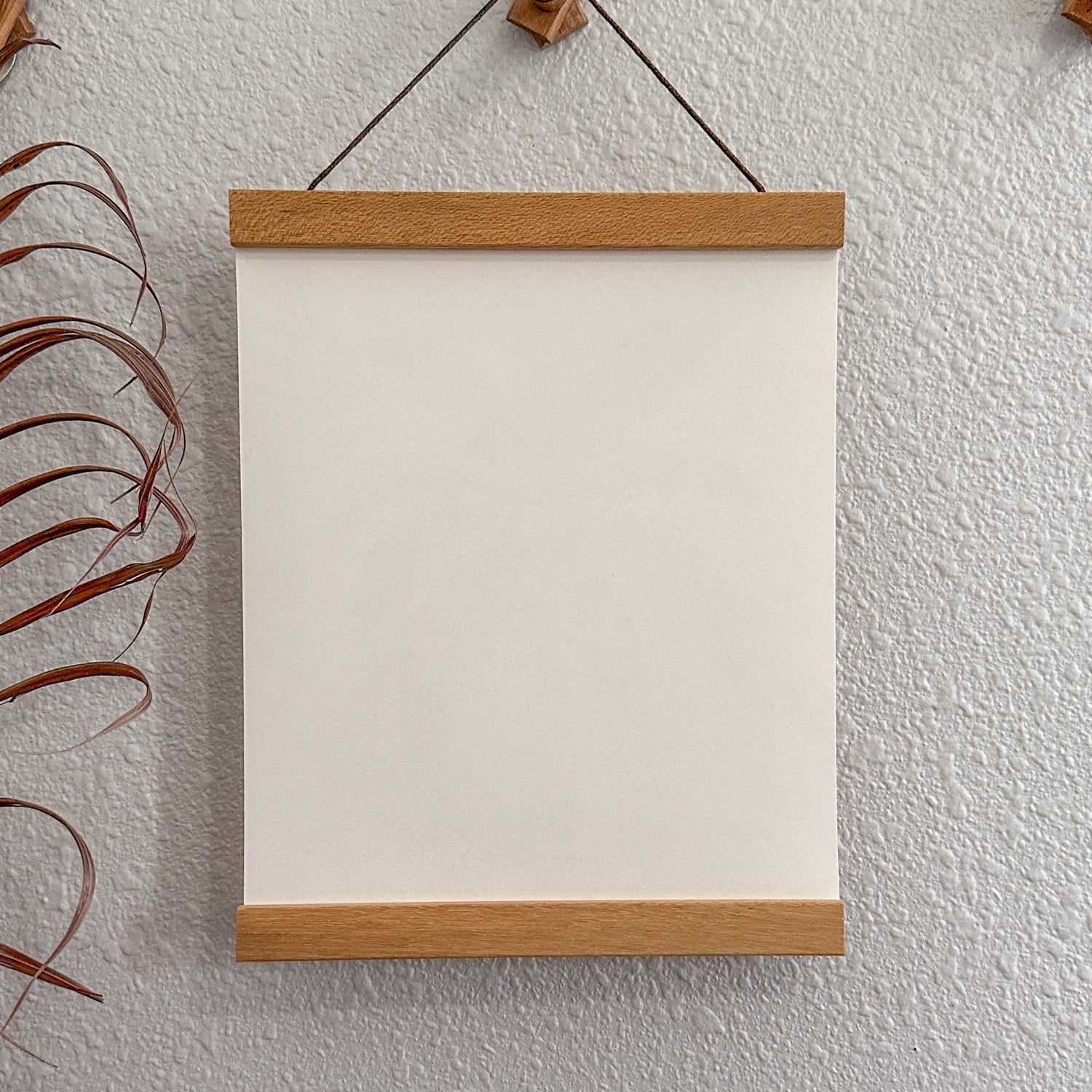 Our 8 inch magnetic poster hangers are made from smooth, solid teak wood — a warm, earthy tone that complements the playful, coastal vibe of our artwork. Hidden magnets securely hold the top and bottom of your print without damaging it, making it easy to swap out prints whenever you’re ready for a new look.