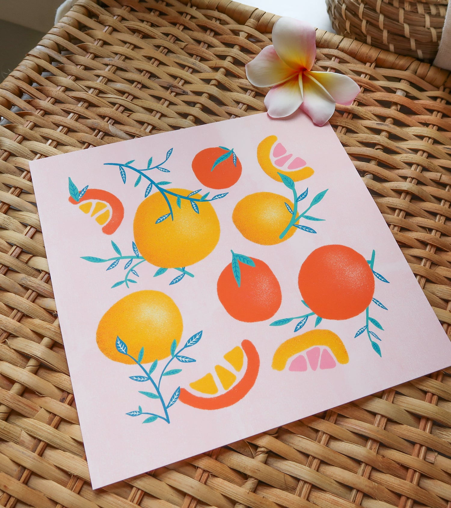 Sunshine on paper! This citrus-themed art print is full of cheerful color and printed on museum-quality cotton paper in my Florida studio.