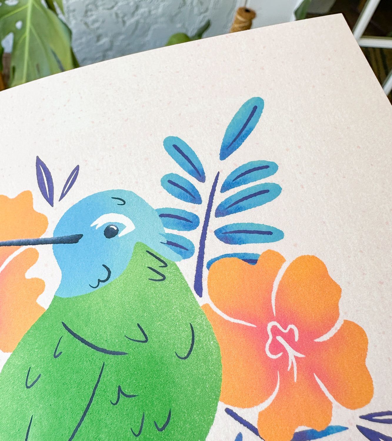 This vibrant little hummingbird is ready to flutter into your home! Printed and packed by hand in my Florida studio, this square art print is perfect for shelf styling, mini gallery walls, or gifting. Bright, bold, and full of island energy.